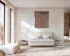 Ambiente Dormitorio en SALVIA | ALMENDRA. Medidas L288 H55+60 cm. Nuevas ideas de composición para estos espacios que merecen un detalle singular, es lo que ofrece el cabezal LISTEL combinado en dos colores y complementado con los módulos RECTO suspendidos a pared.