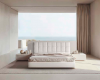 Cabecero tapizado de 320x120 cm alto, juegos de mesitas auxiliares Shitake de Ø50x50 cm alto-Ø40x40 cm, mesita de 2 cajones de 60 cm. Colores: Ivory -Tapizado Marfil -Maya -Marco Titanium. Disfruta de un ambiente sofisticado en todos sus aspectos. Su combinación de acabados lo hace realmente exquisito. Pero en él destaca también la calidad de los materiales, la elegancia de sus movimientos, lo práctico que resulta en tu día a día.