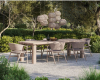 Mesa de comedor de exterior AMARE-2, una pieza imponente y elegante diseñada para convertirse en el centro de cualquier espacio exterior. Su gran tablero de líneas suaves y esquinas redondeadas aporta una estética contemporánea y refinada, mientras que su sólida estructura garantiza estabilidad y resistencia. Ideal para jardines y terrazas amplias, esta mesa combina diseño y funcionalidad para disfrutar de reuniones al aire libre con estilo y confort.