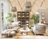 Conjunto fabricado en Fibra sintética natural. Sofá 3 plazas 240x103x78 cm alto. Sillón 108x103x78 cm alto. Mesa de centro 120x 75x 45 cm. Nos encanta este estilo romántico y fresco. Entre sus texturas corre el aire ligero. Cuando cae la luz, es fácil trasladarse a las mil y una noches.