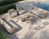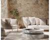 Conjunto de exterior con sofás fabricados en Teka reciclada artesana. Tejidos especialmente diseñados y seleccionados, con las máximas prestaciones, que aportan una gran durabilidad. Las piezas que componen estas colecciones, se centran en el uso de la madera de teca reciclada, y son el hilo conductor de un discurso basado en el confort y en las formas amables y orgánicas. Cada una de sus piezas atiende a un proceso artesanal que las hace únicas y dan cabida a la imperfección, como un acto sublime y singular.