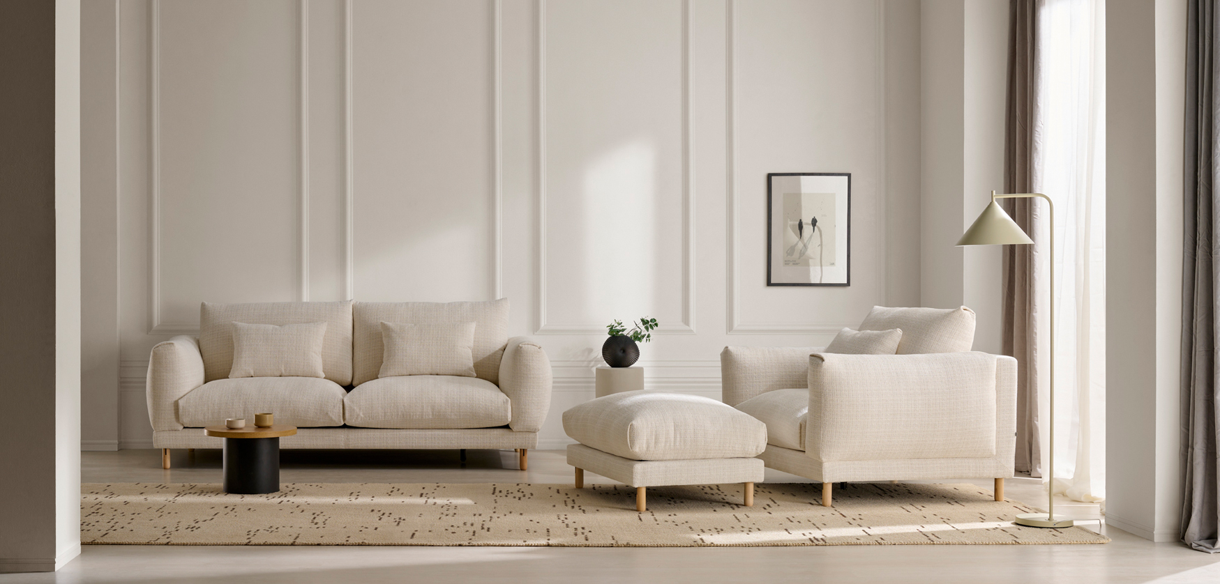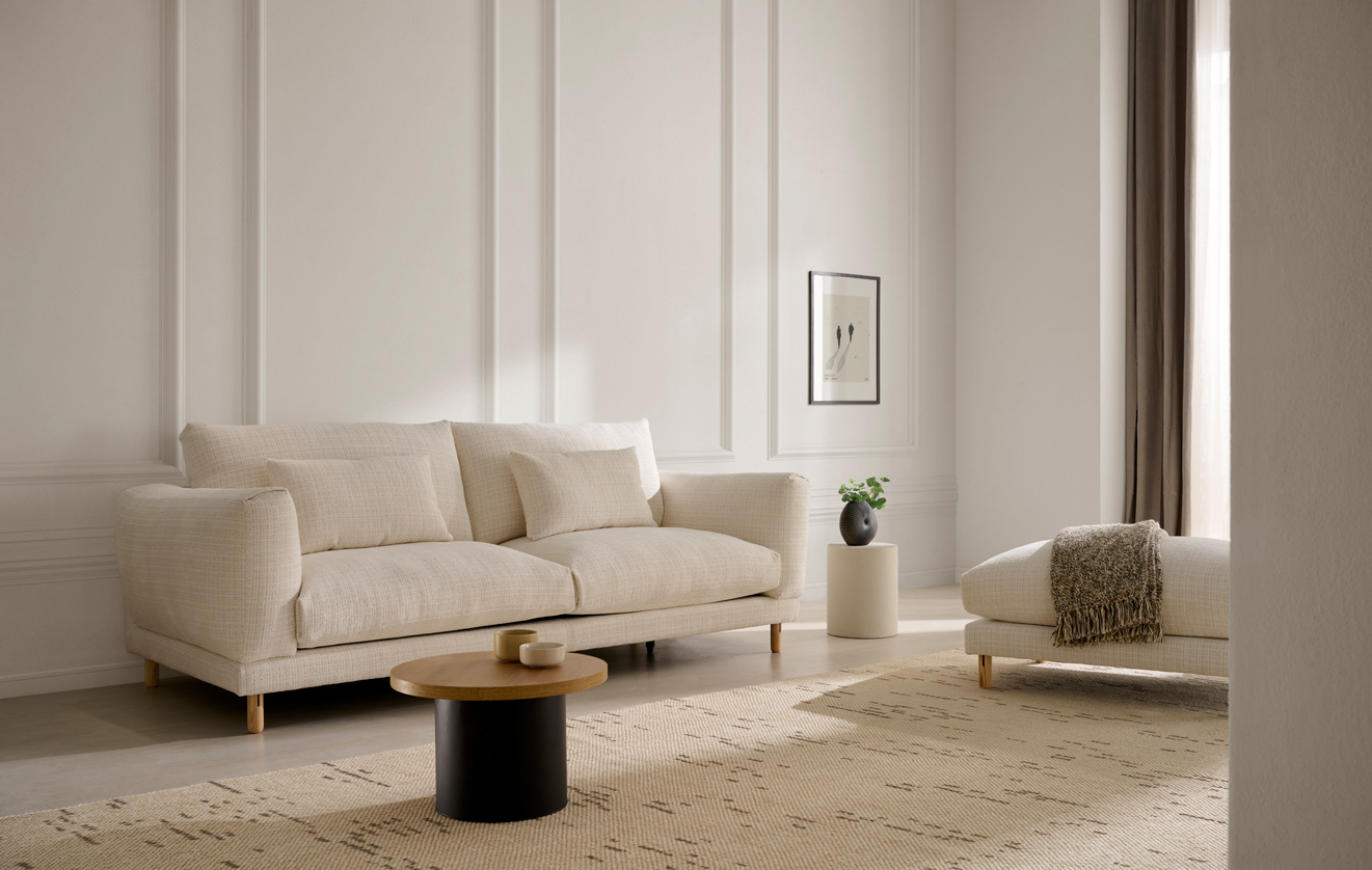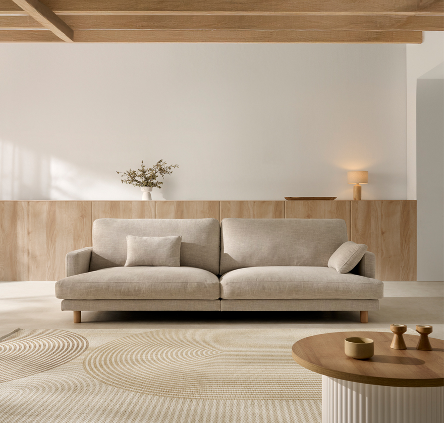 Este sofá combina líneas puras, proporciones equilibradas y un estilo atemporal que encaja en cualquier ambiente moderno o clásico. Su diseño transmite calma, naturalidad y elegancia discreta, invitando a disfrutar del descanso con una estética ligera y acogedora.